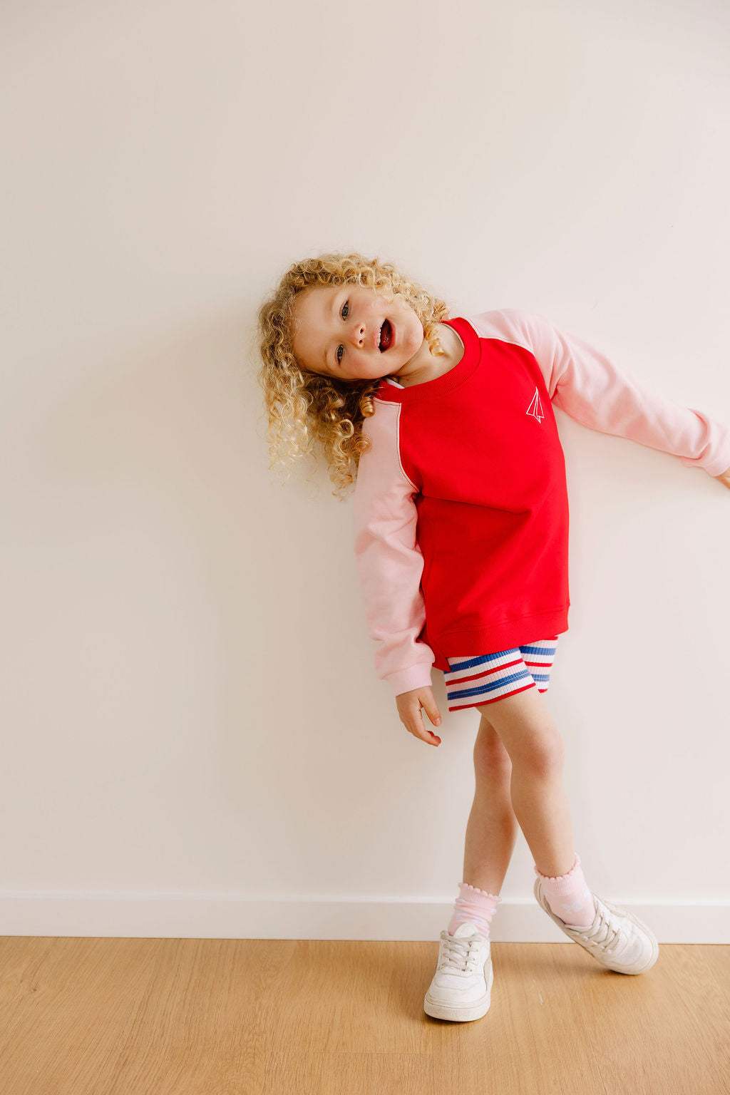 Paper Plane Raglan Crew - Bubble Gum and Scarlett with our 'Paper Plane' Embroidery A relaxed fit for comfort and style, no need to size up! 100% Cotton 280gsm Sweatshirting...
