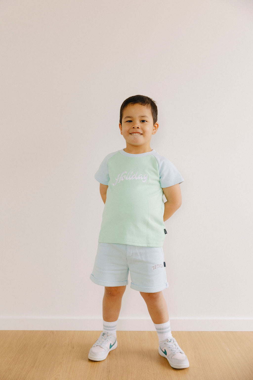 Holiday Raglan Tee - Ice Blue and Mint with our 'Holiday' Embroidery A relaxed fit for comfort and style, no need to size up! 100% Cotton 280gsm Sweatshirting - perfect...