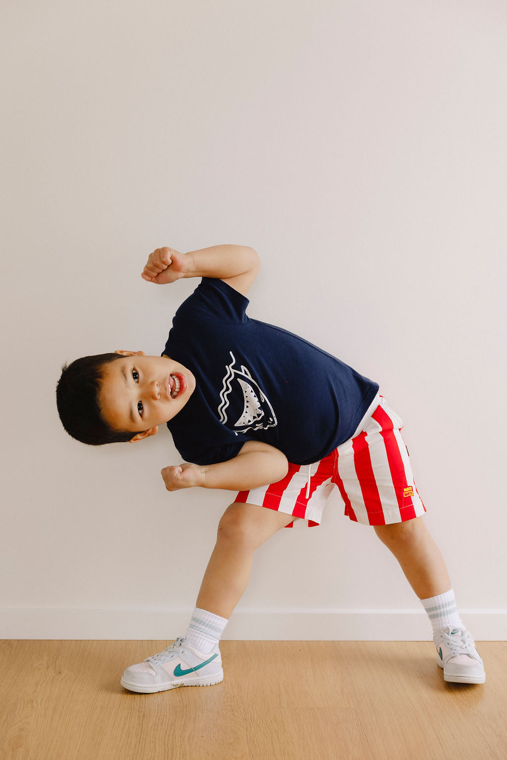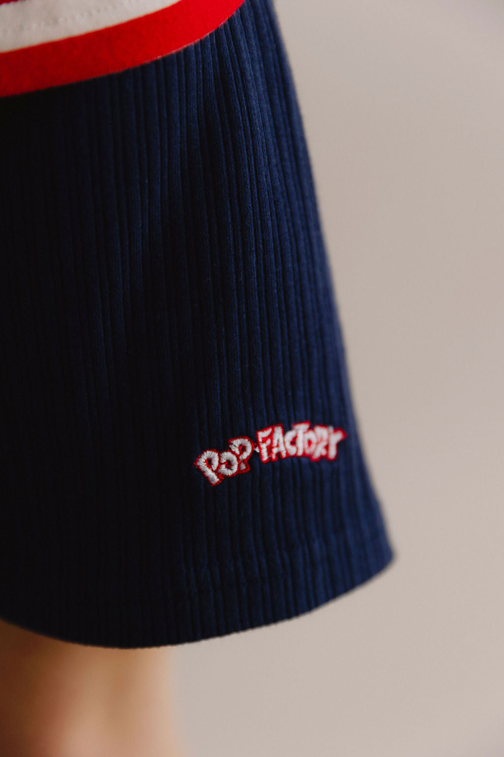 Navy Bike Shorts with our PF Embroidery in Red and White Cotton/Elastane Rib Designed in Aotearoa, New Zealand Measurements:1/2 Waist (Elastic Relaxed) CM1-2 - 213-4 - 235-6 - 257-8 -...