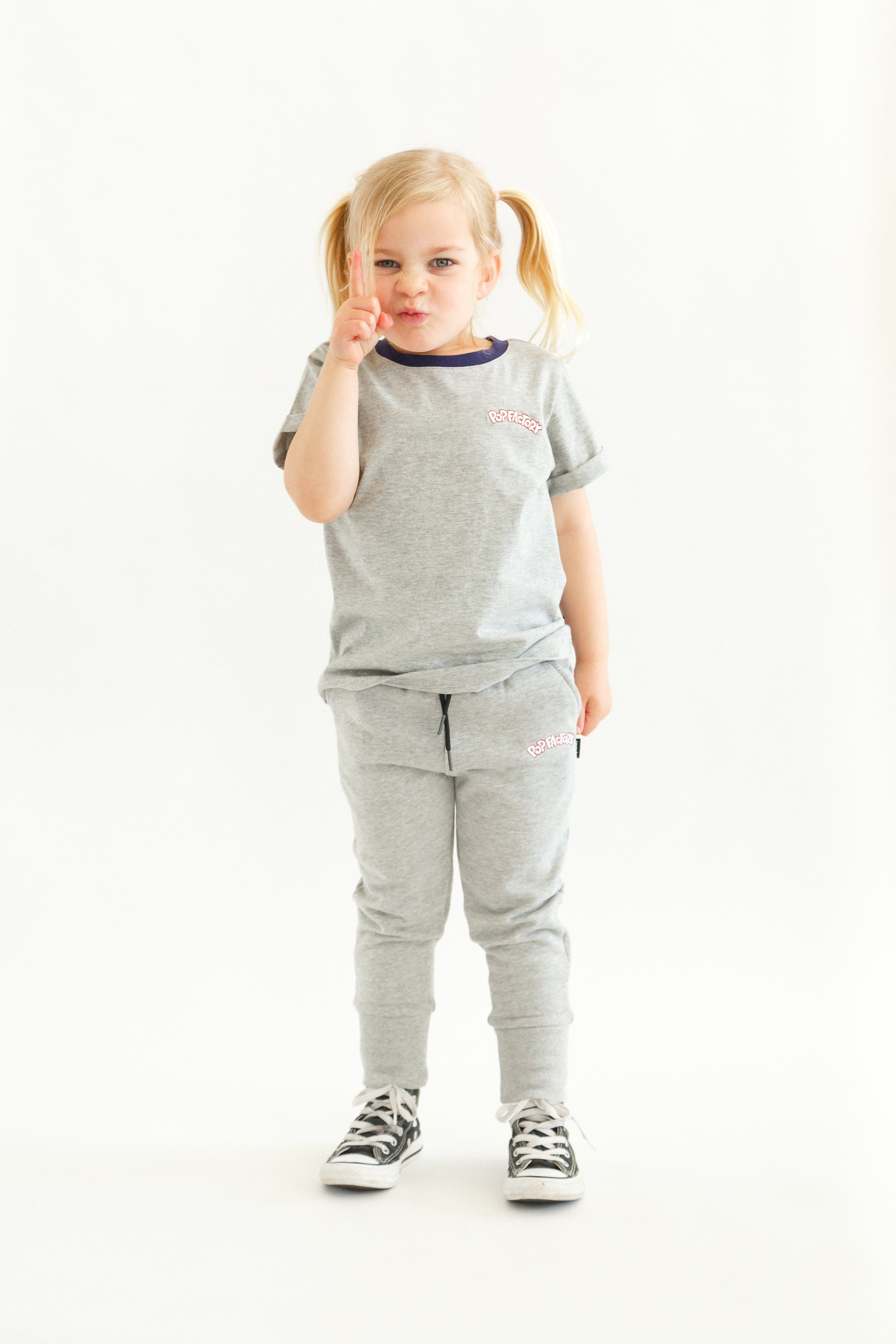 Grey Marle Classic Tracks with Pop Factory red and white embroidered logo A relaxed fit for comfort and style, no need to size up! 100% Cotton Designed in Aotearoa, New...