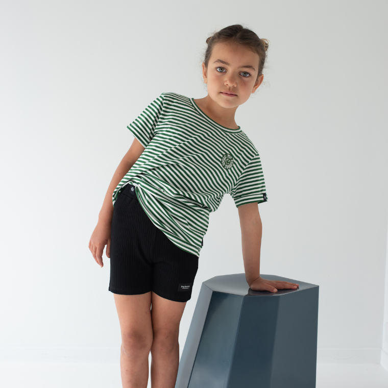A textured pink and red striped bike short, for kids who love vibrant style A relaxed fit for comfort and style, no need to size up! Cotton/Elastane Designed in Aotearoa,...